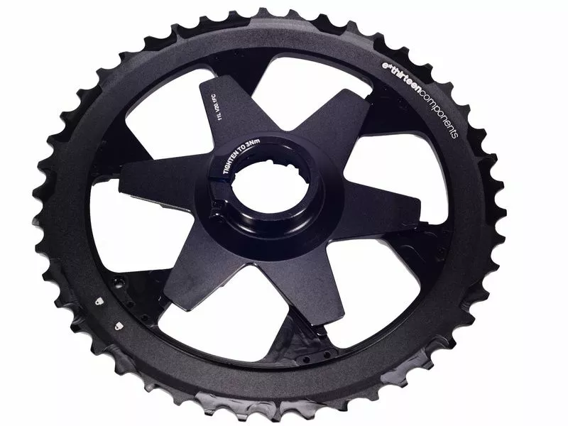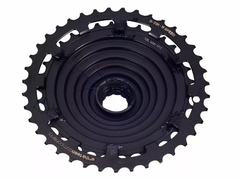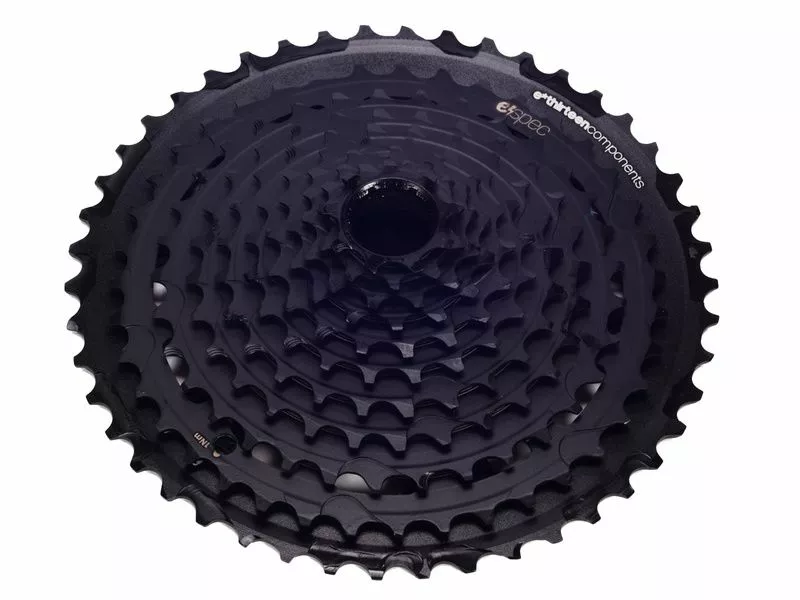 La cassette E 13 TRS+ 11 vitesses offre une plage de développement parmi les plus larges du moment avec ses pignons allant de 9 dents pour le plus petit à 46 dents pour le plus grand. Cette large plage de 511% de développement vous permet de rouler en mono plateau et de passer partout sans avoir à forcer ni « mouliner » excessivement. Le plus grands pignons 46 dents est usiné CNC à partir d’aluminum ultra résistant et est disponible au détail ce qui vous laisse la possibilité de le changer lorsqu’ils est usé sans avoir à remplacer toute la cassette. Les 10 autres pignons sont réalisés en acier et se vérouillent sur le reste de la cassette grâce à une clé à cassette traditionnelle