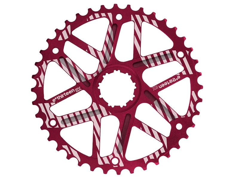 Le pignon 42 dents E Thirteen EX Cog vous permet de bénéficier des nouveaux rapports de transmission utilisés sur les groupes 1X11 vitesses XX1 et X01 sans avoir à tout changer. Il vous suffit de monter ce pignon derrière celui de 36 dents de votre cassette XT ou XTR 10 vitesses, d’oter le pignon de 15 ou 17, et de refaire votre réglage de dérailleur avec la vis de tension fournie et vous voilà avec une transmission prête à faire parler la poudre !