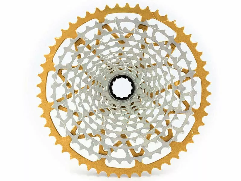 La cassette Garbaruk XD 12 vitesses bénéficie d’une grande qualité de fabrication . A la fois légère et accessible, elle offrira un haut niveau de performances à votre transmission 12 vitesses. Compatible uniquement avec les corps de roue libre type Sram XD, cette cassette est fabriquée à partir d’un seul et même bloc d’acier pour les 11 premiers pignons. Le dernier pignon est quant à lui réalisé en aluminium 7075 anodisé ici en couleur Or. Disponible en 10-48, 10-50 et 10-52 dents, la cassette Garbaruk vous offrira une grande précision de changement de vitesses, un poids plume, et une excellente durabilité. Cerise sur le gâteau elle offrira à votre vélo un look incomparable grâce à son anodisation or surtout si vous optez pour les chapes de dérailleur et galets pour dérailleurs Sram et Shimano aussi disponibles dans la même couleur d’anodisation.
