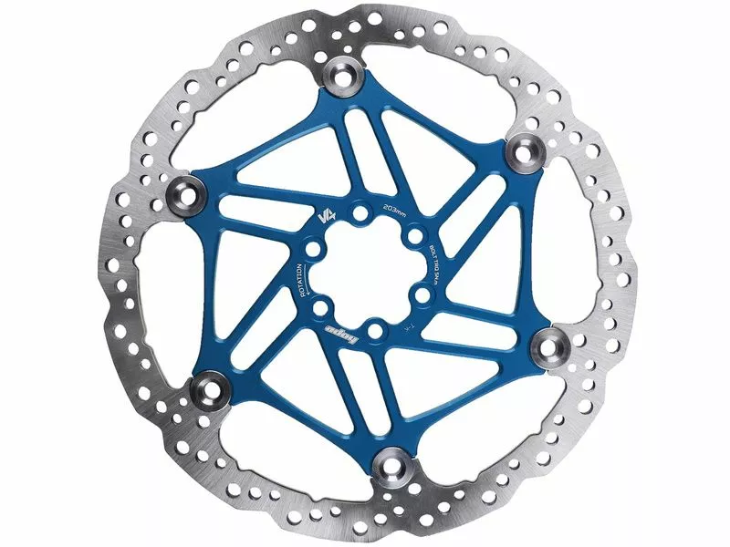 Le disque Flottant Ventilé Hope pour freins V4 est maintenant disponible en 203 mm et 220 mm. Il offre une meilleure dissipation de la chaleur de par sa surface de freinage en acier rivetée sur une étoile en aluminium et de par ses d’ailettes internes permettant à l’air de circuler entre les surfaces de freinage. Disponible en 6 couleur (Noir, Bleu, Rouge, Orange, Violet, Argent) ici en couleur Bleu