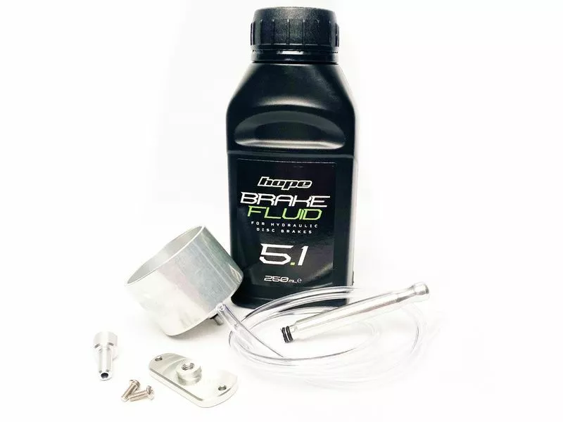 Hope facilite maintenant la purge de ses freins grâce à ce nouveau kit de purge disponible pour les freins Tech 4, Tech 3, Tech Evo ou Race Evo. Ce kit contient tout le nécessaire pour effectuer une purge de votre système de frein, à savoir un bocal de purge avec son raccord, un capot + joint de purge, un bidon d’huile DOT et 1 flexible raccord pour l’évacuation de l’huile