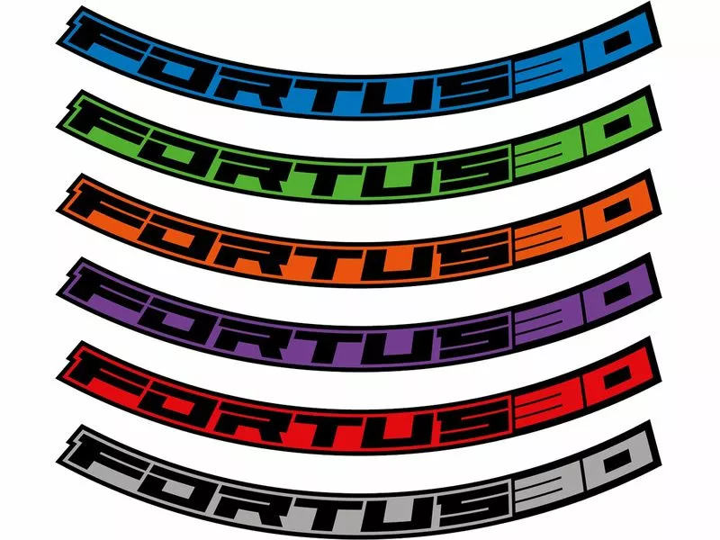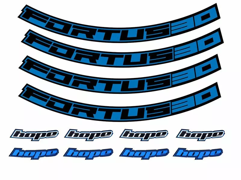 Kit de stickers de personnalisation pour roues Hope, compatible avec les jantes Fortus 30 en version 27.5″. Disponible en 6 couleurs : Bleu, Orange, Rouge, Vert, Argent, Violet