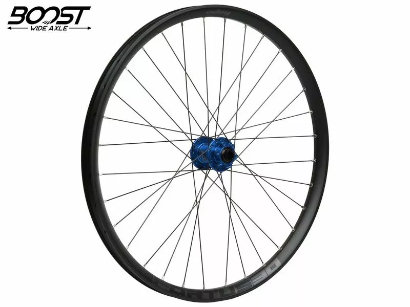 Avec une jante renforcée de 30 mm de largeur interne la roue avant Fortus 30 27,5”de Hope est clairement destinée aux pratiques engagées comme l’Enduro ou la descente. Digne héritière de la Tech DH c’est la roue la plus solide de la marque et elle accepte parfaitement les sections de pneu comprises entre 2.40 et 2.80. La Fortus 30 est ici équipée de l’excellent moyeu Pro 4 en version Boost 15×110 mm.
