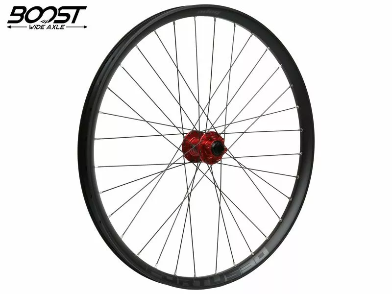 Avec une jante renforcée de 30 mm de largeur interne la roue avant Fortus 30 29”de Hope est clairement destinée aux pratiques engagées comme l’Enduro ou la descente. Digne héritière de la Tech DH c’est la roue la plus solide de la marque et elle accepte parfaitement les sections de pneu comprises entre 2.40 et 2.80. La Fortus 30 est ici équipée de l’excellent moyeu Pro 4 en version Boost 15×110 mm.