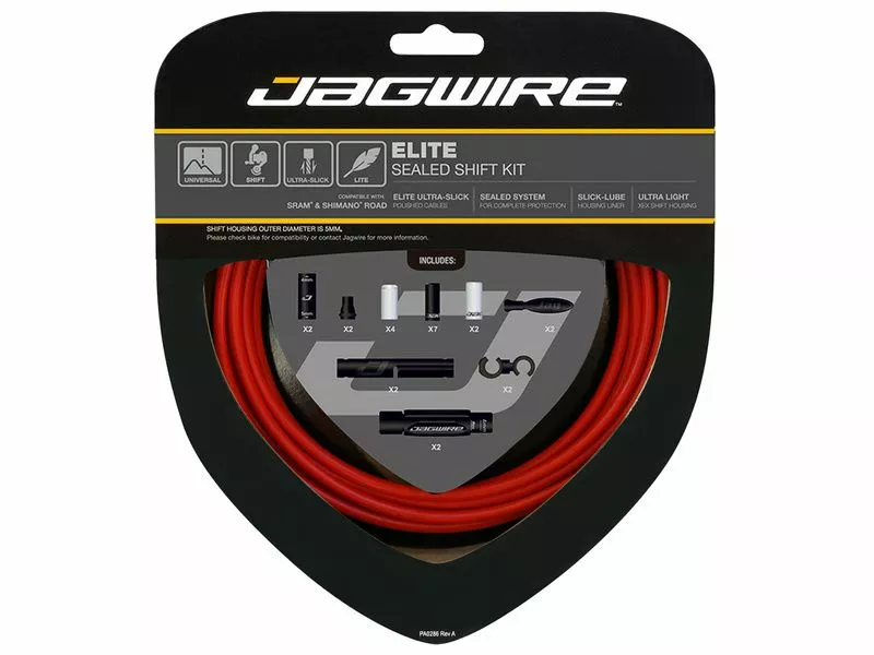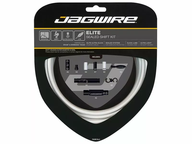 Le kit câbles et gaines de dérailleur Jagwire Universal Elite Sealed utilise un nouveau liner Slick Lube combiné à des joints protègeant ainsi totalement le système contre la terre, la boue et autres débris. La lubrification basse friction offre d’excellentes performances et une grande durabilité quelques soient les conditions météo