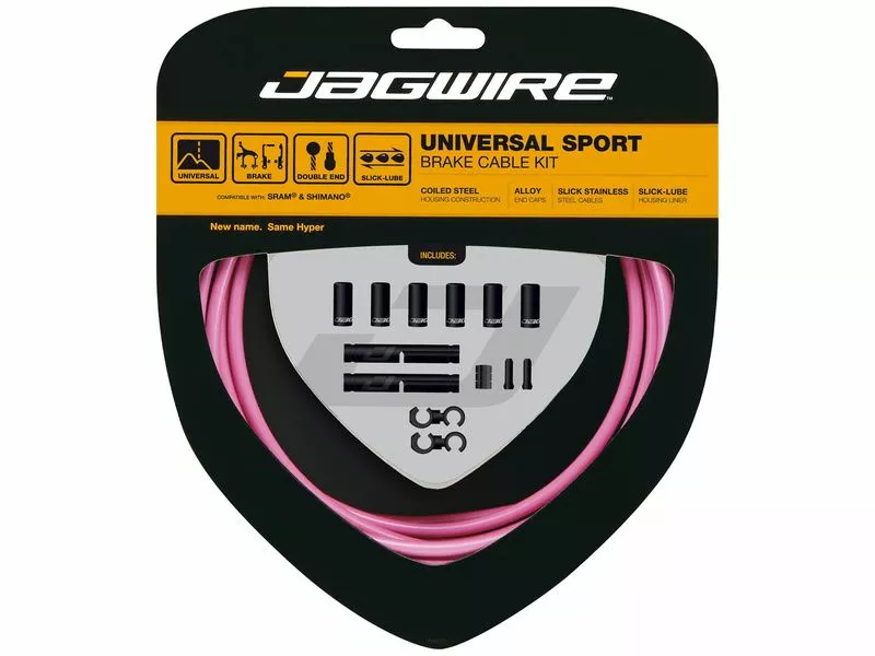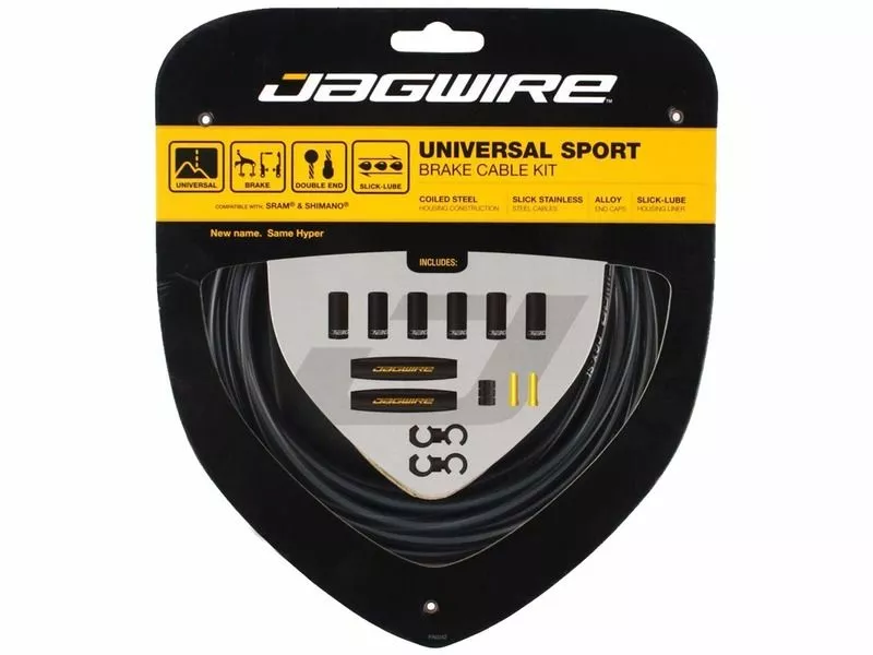 Le kit câbles et gaine de frein Jagwire Universal Sport est composé d’une gaine CGX-SL et de deux câbles en acier inoxydable à double tête pour être compatible avec les freins Shimano et Sram. La gaine CGX LEX est constituée d’anneau en acier enroulés autour d’un liner prélubrifié (Slick Lube). Le kit est disponible en plusieurs coloris.