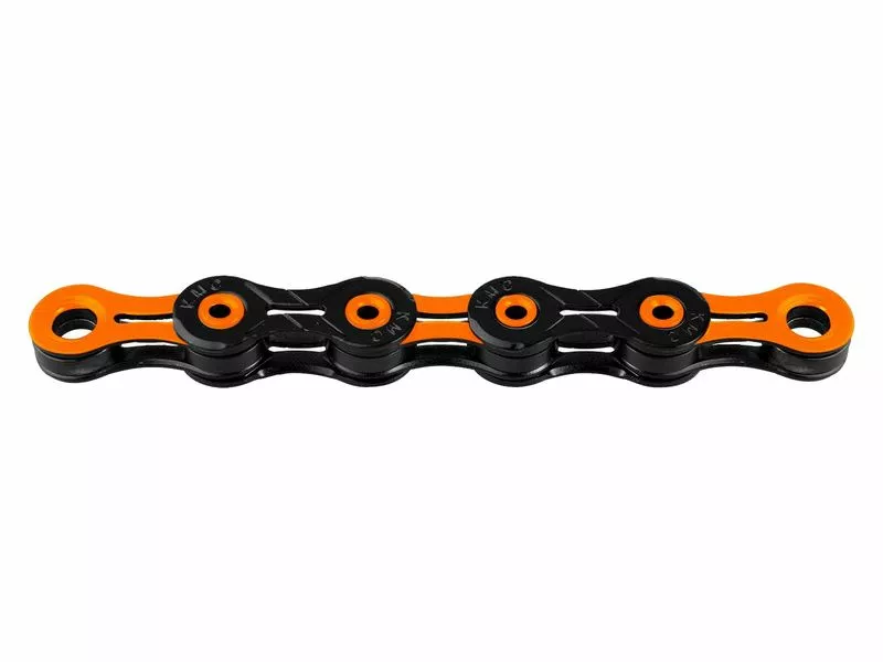 La chaine KMC DLC 11 vitesses compte désormais 118 maillons. Tous ajourés ils bénéficient du traitement Titanium Carbon Nitride (TiCN) qui augmente sensiblement la résistance aux frictions et à l’usure. Les passages de vitesses sont ainsi encore plus efficaces et précis. Les rivets, creux eux aussi, et les rollers sont conçus avec un traitement thermique unique qui se rapproche du procédé de fabrication des diamants de synthèse. Ils sont ainsi ultra résistants et offre une durée de vie inégalée. Pour ne rien gâcher cette KMC DLC 11 est particulièrement esthétique et disponible en plusieurs coloris.