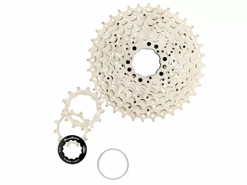 Cassette Sunrace CSMS1 10 vitesses 11‑36 dents dont les deux premiers pignons sont amovibles et les 8 derniers sont montés sur un système monobloc. Un rapport qualité prix imbattable pour une qualité de transmission très correcte
