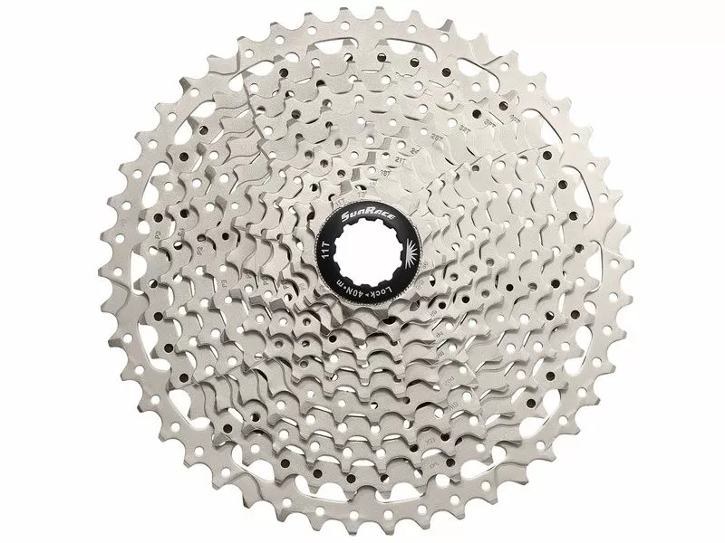 Les pignons de la cassette Sunrace MS8 11 vitesses sont tous en acier, afin d’offrir une longévité accrue et un tarif plus abordable. Disponible en 11-42 ou 11-46 dents et en couleur Noir ou Argent comme ici, elle est compatible avec les corps de cassette Standard (Shimano 9-10-11 vitesses et Sram 9-10 vitesses) et toutes les transmissions 11 vitesses.