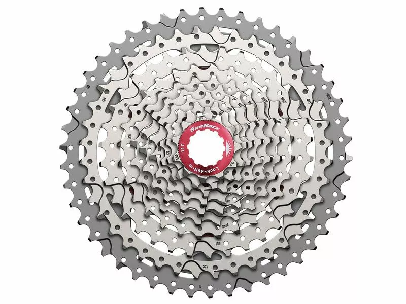 La cassette Sunrace MX3 10 vitesses argent est parfaitement adaptée aux transmission mono plateau (1X) grâce à des étagement très conséquents comme le tout dernier 11-46 dents ! Pour gagner un peu de poids le grand pignon, tout comme l’étoile et l’écrou, est fabriqué en aluminium.