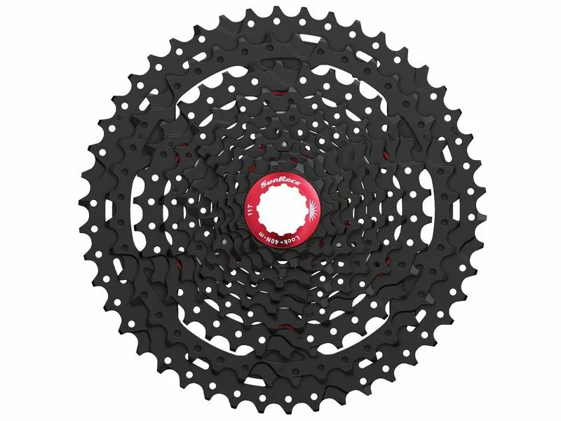 La cassette Sunrace MX3 10 vitesses noir est parfaitement adaptée aux transmission mono plateau (1X) grâce à des étagement très conséquents comme le tout dernier 11-46 dents ! Pour ganger un peu de poids le grand pignon, tout comme l’étoile et l’écrou, est fabriqué en aluminium.