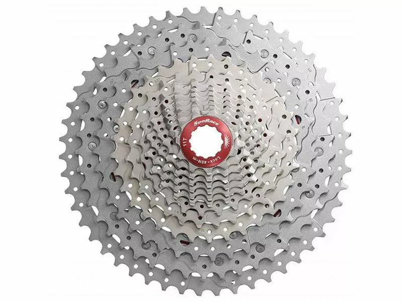 La cassette Sunrace MZ800 dispose de 12 vitesses étagées de 11 à 51 dents. Son gros atout est qu’elle va vous permettre de rouler en 12 vitesses même si vous n’avez pas de corps de roue libre de type XD sur votre roue puisqu’elle s’installe sur les corps de roue libre standards (type Shimano 9-10-11 vitesses). Son ratio de 463% permet de franchir les côtes les plus raides en utilisant un système mono plateau. Elle est compatible avec les dérailleurs Shimano 12 vitesses et Sram 12 vitesses GX Eagle, XO1 Eagle et XX1 Eagle.